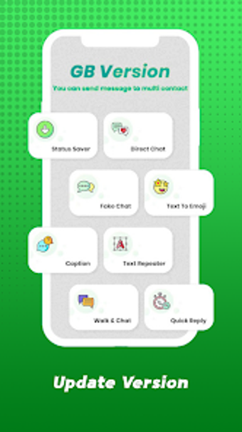 Ngoài tính năng lưu trữ trạng thái, GB Version APK còn bao gồm trình chuyển đổi văn bản thành biểu tượng cảm xúc, trình lưu trữ câu chuyện, tin nhắn nhanh và nhiều hơn nữa. Với GB Version APK, bạn có thể chia sẻ trạng thái WhatsApp của mình mà không có bất kỳ quảng cáo phiền hà nào trên các ứng dụng truyền thông xã hội khác. Ứng dụng cung cấp trò chuyện trực tiếp, quyền riêng tư lần cuối được xem, bộ lặp văn bản, hỗ trợ tất cả các phiên bản Android và khả năng gửi các tệp lớn. GB Version APK cũng cung cấp các kiểu văn bản phong cách để làm cho cuộc trò chuyện của bạn thú vị hơn.
